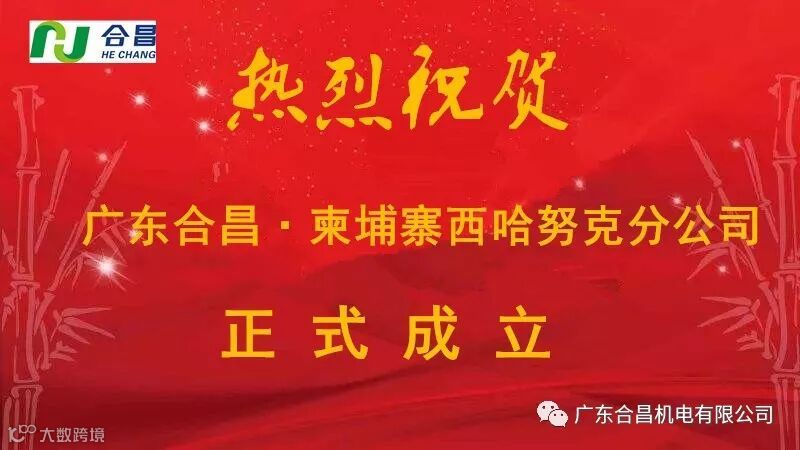 几年来,合昌公司董事长伍显松先生从未停止过对海外市场的考察,终于于去年年底将目光定在了柬埔寨西哈努克省,并于本月正式在柬埔寨成立广东合昌机电有限公司柬埔寨西哈努克分公司。