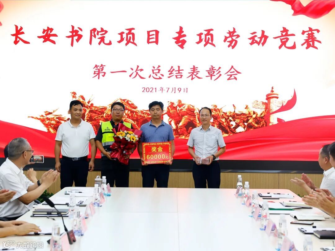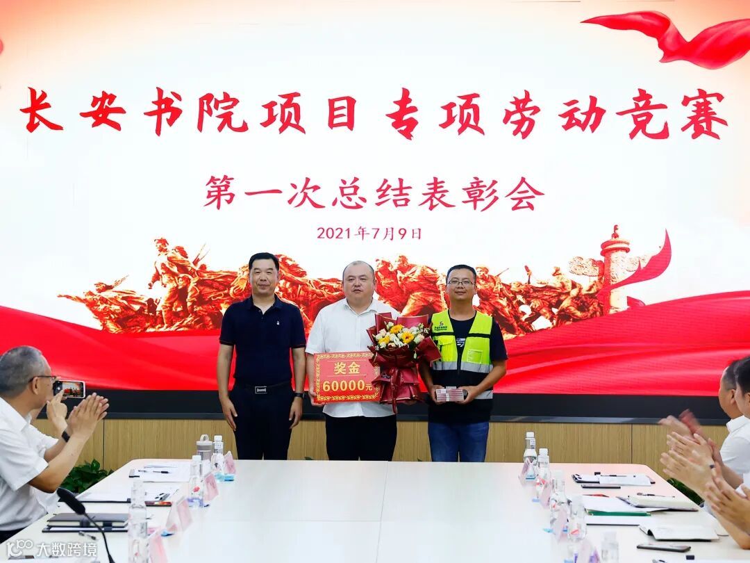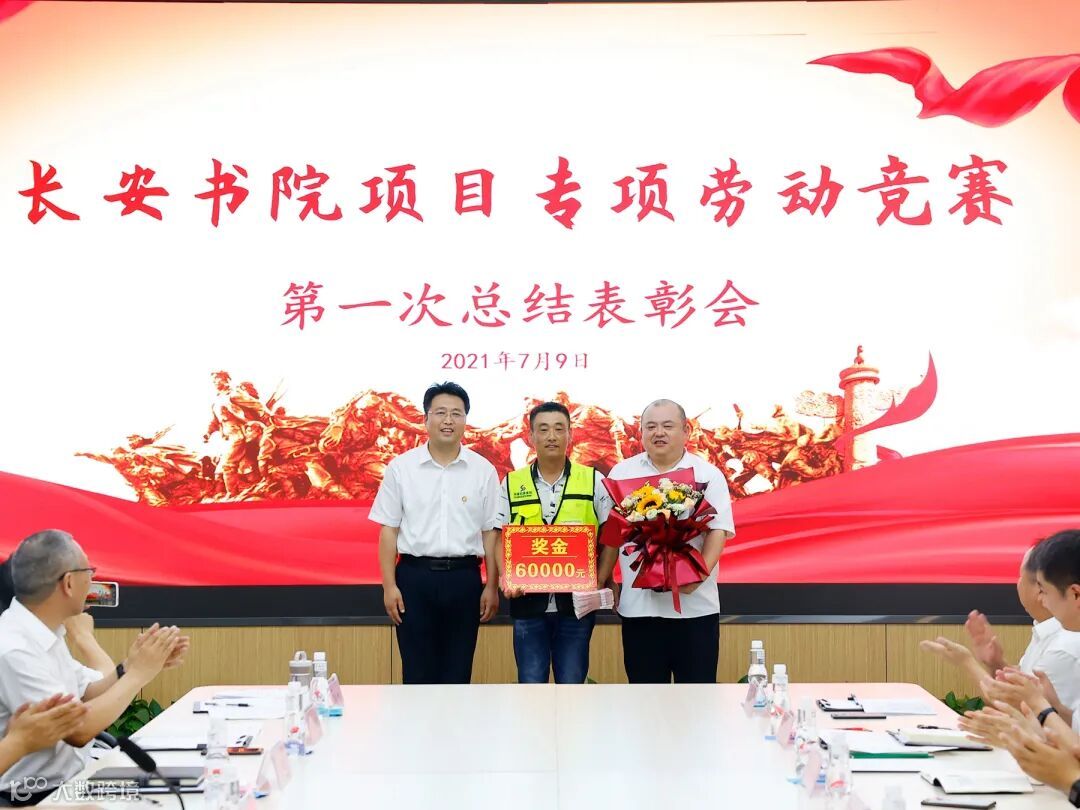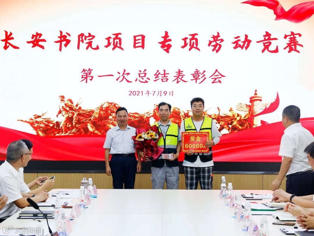长安书院项目经理杨占涛对第一阶段项目完成情况进行了汇报,获奖的各工区代表、先进个人分别作交流发言。发言结束后,集团各部门负责人分别就长安书院项目第一阶段劳动竞赛开展情况进行了点评。