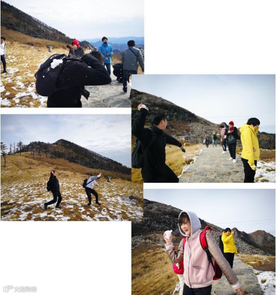 山顶积雪未消,只听一声尖叫,打雪仗突然开始了,大家笑啊、闹啊,不停歇的快乐和满足。