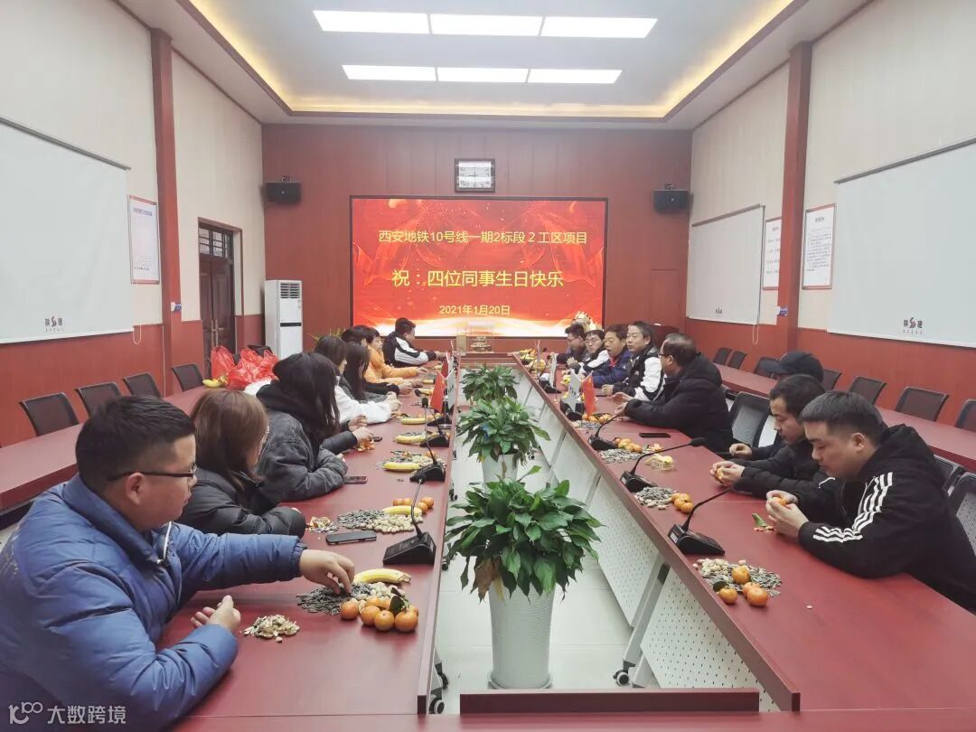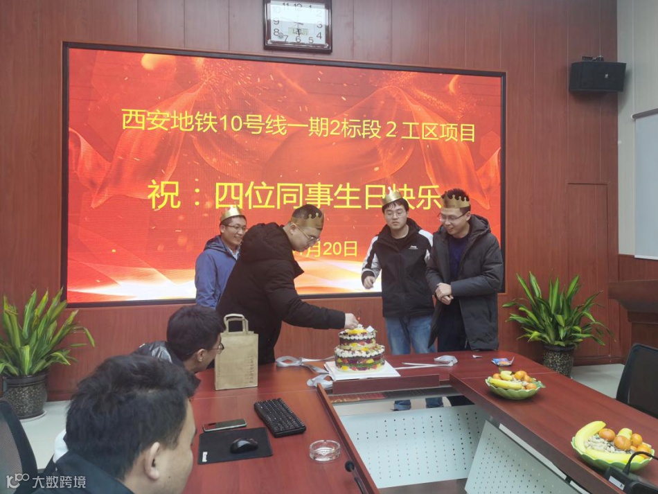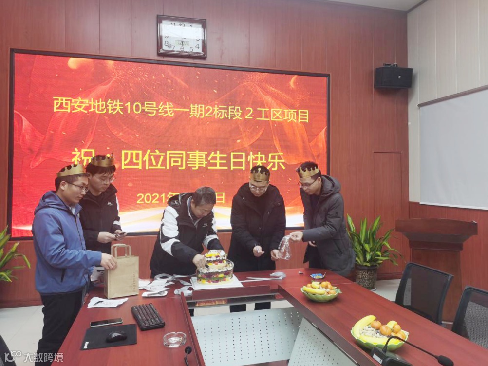 为营造项目部“大家庭”的氛围,增强职工关怀的“厚度”和“温度”,增进员工友谊,提升团队凝聚力,近日,西安地铁十号线一期工程2标段2工区项目部隆重举办员工集体生日会,27名员工欢聚一堂,一起为4位寿星庆祝生日。