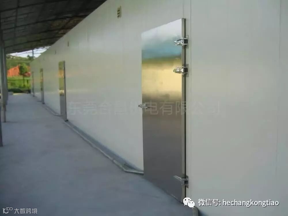 冷库门安装技巧:冷库门安装首先特别要注意的是门框的平衡。很多小冷库工程公司安装冷库门的时候不注重门框的平衡性,等到安装完毕以后才发现冷库门是倾斜的,不是朝里边倾斜,就是朝外侧倾斜。冷库门的倾斜直接导致冷库内的保温效果受到影响。具体操作方法:(一)将左右门框板上的竖凸条留出门上框板的高度。1)使用水平平衡门框后固定门框;2)冷库门上框板自下向上推入安装位置;3)对隔墙的门上框板、将它由下向上推入安装位置。(二)加热丝及门框包条的装置。1)由铝箔胶带粘接于门框四周。门框包条以铆接于门框上,冷库库体门加热丝沿开口外侧25mm四周布设。并将加热丝覆盖。(三)旋转门的装置。1)将安装模板(MB1左端铰链装置模板、MB2右端铰链装置模上,2)门板上已预制铰链及门锁的装置螺孔。按模板上定位孔在左右门框上钻孔攻丝M6〕