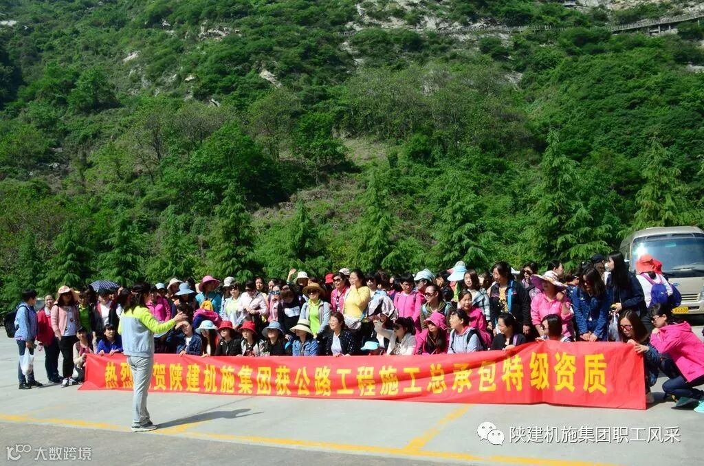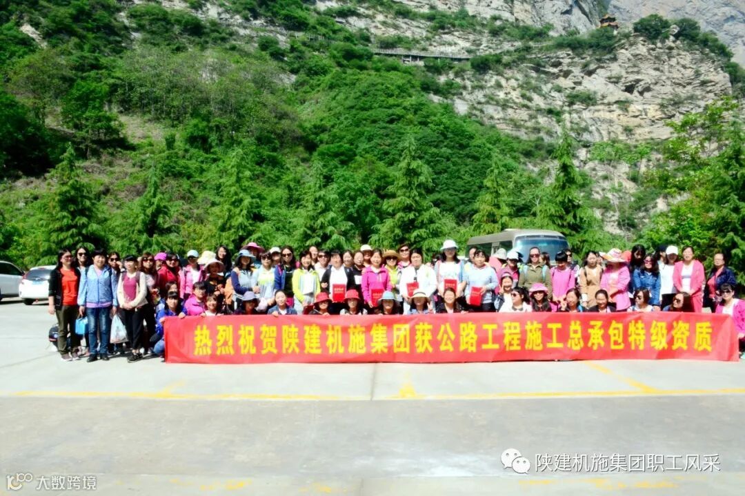 工会副主席、女工主任程夏萍代表陕建机施集团对姐妹们致以劳动节的问候,鼓励女职工立足岗位,奋勇争先,以先进为榜样,拥抱新时代,展现新作为。几天前陕建机施集团喜获公路工程施工总承包特级资质,女职工们自发拉起横幅在景区宣传庆贺。