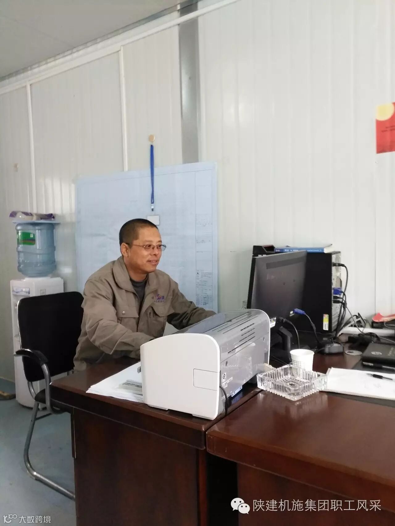 走进现场,首先给人的感觉正如《咸阳日报》以“斗酷暑、战困难、保工期”的头版图片新闻所报道的那样,整个项目部处处呈现出一片热火朝天的景象,项目部的每个人似乎都感受不到太阳的炙热,紧张而又有条不紊的忙碌着。看着他们一个个疲惫而又认真工作的身影,让刚刚在太阳地待了没一会就汗流浃背的我们真的是由衷的感到自惭形愧了。