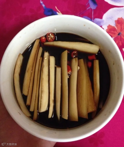 3、按照生抽、醋、糖一比一比一的比例兑成腌料汁,糖可减少