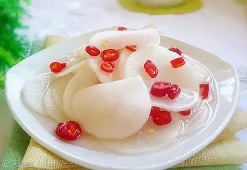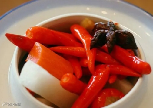 食材:白萝卜、红辣椒、白糖、食醋、食盐