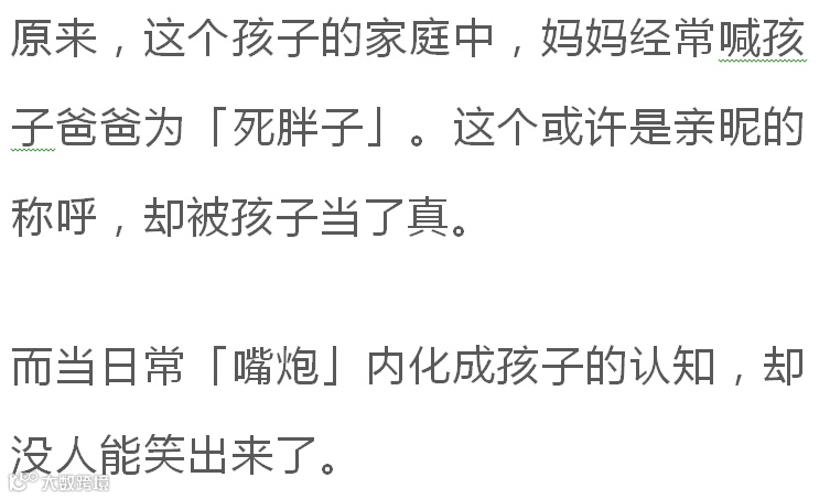 嗔怪式称呼,比如妈妈叫爸爸「死胖子」「死鬼」,爸爸叫妈妈「小弱智」等。这类称呼更适合私密的情感宣泄,不适宜在孩子面前频繁互称。