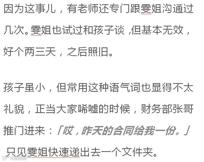 雯姐说,孩子什么都挺好,就是说话没大没小。他想喝水,会对雯姐说:「喂,给我倒杯水」;他想吃虾,会对奶奶说:「哎,奶奶,晚上做虾给我吃!」