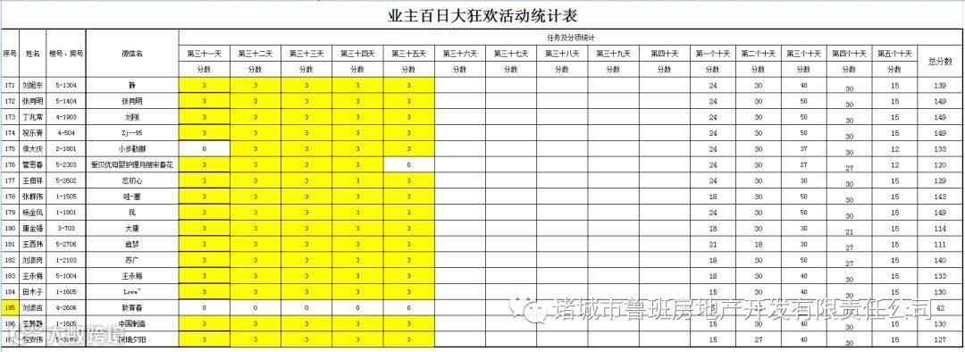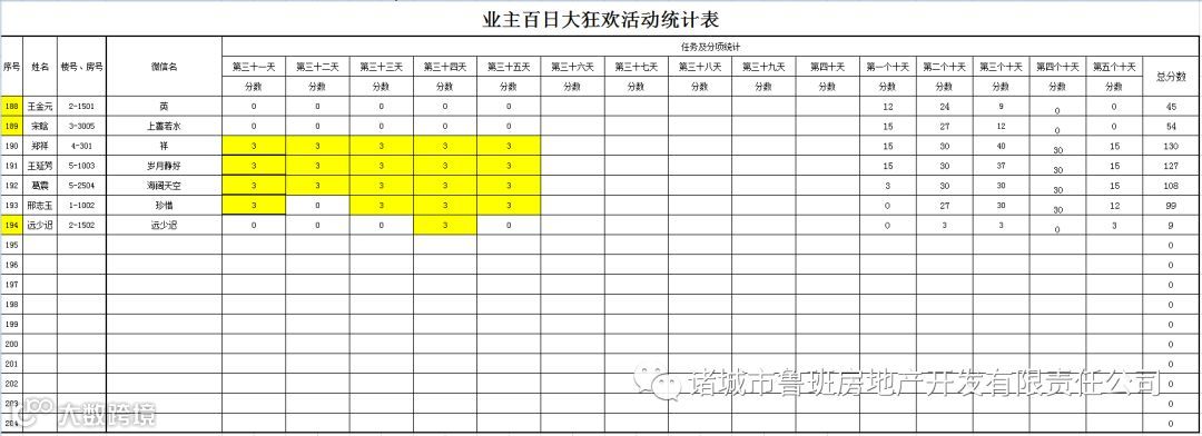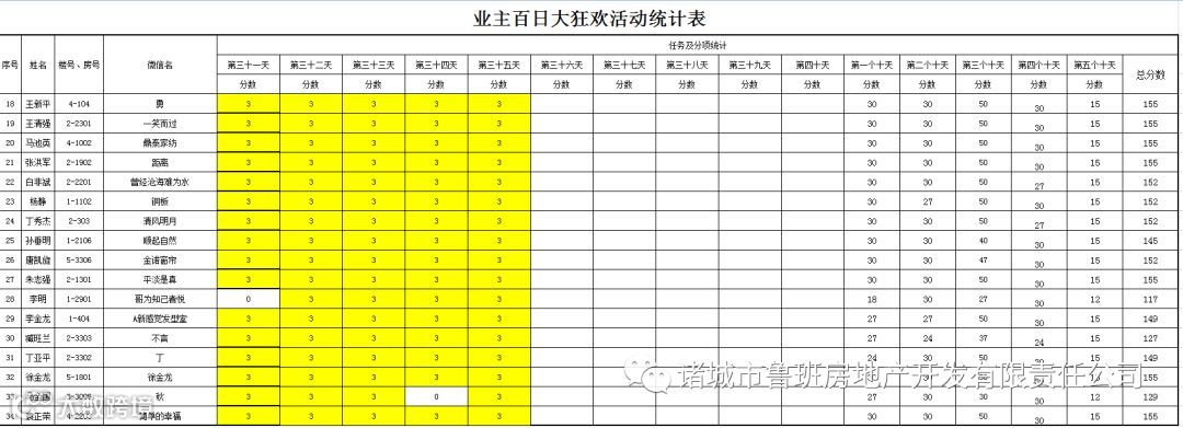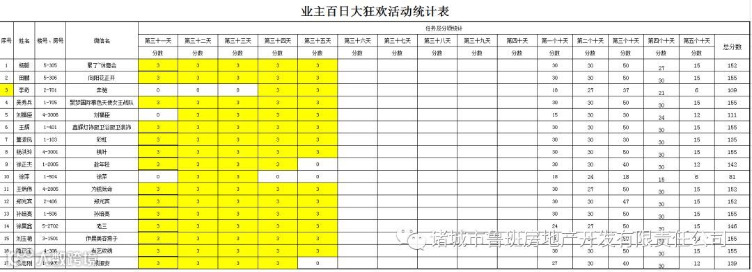 ③.活动结束后,依据业主得分,分高者胜。