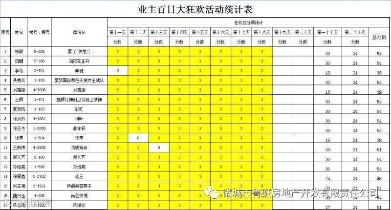 ③.活动结束后,依据业主得分,分高者胜。