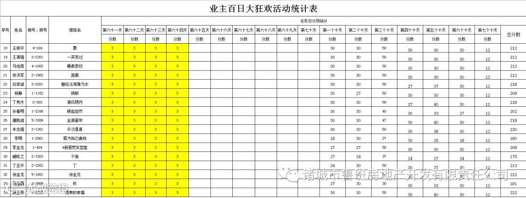③.活动结束后,依据业主得分,分高者胜。