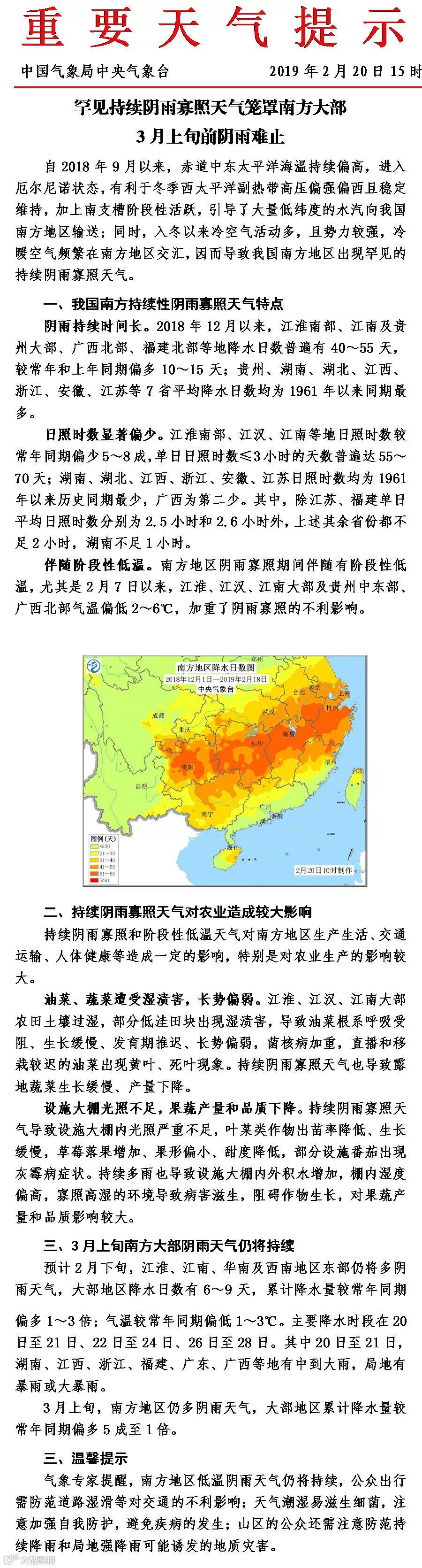 三月上旬南方阴雨天气仍将持续