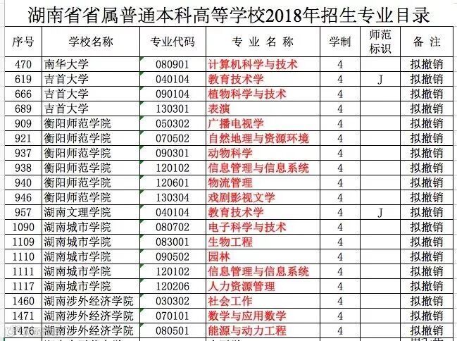 前不久,湖南省教育厅印发《湖南省省属普通本科高等学校2018年招生专业目录》,19个专业拟撤销。