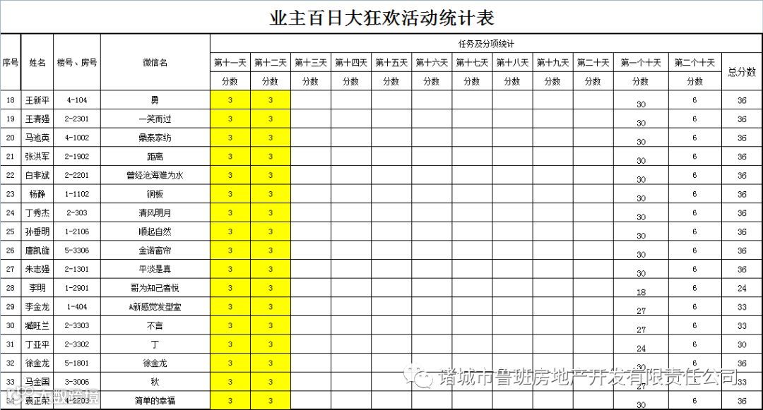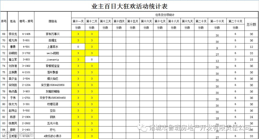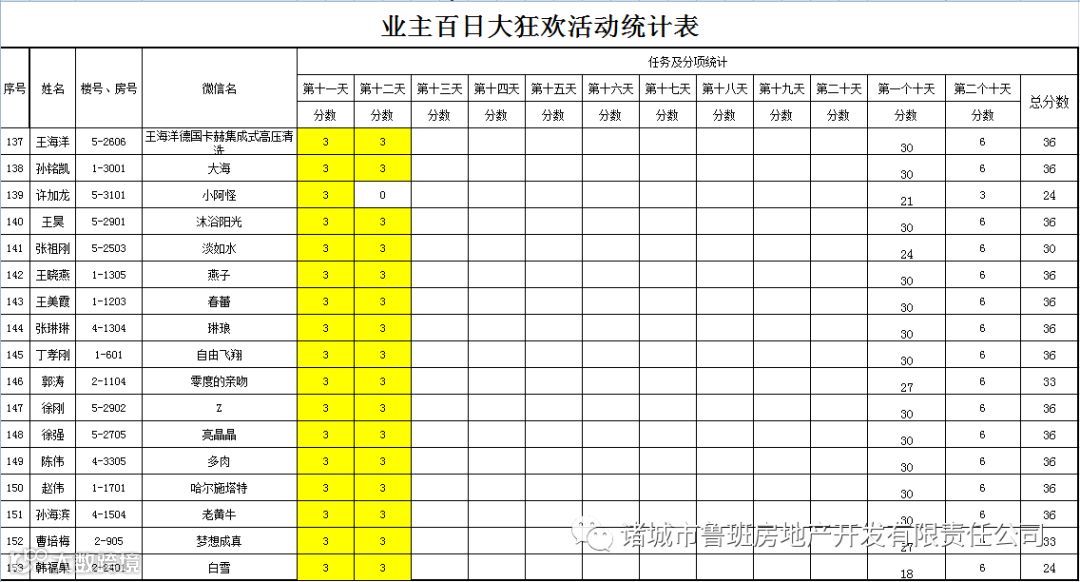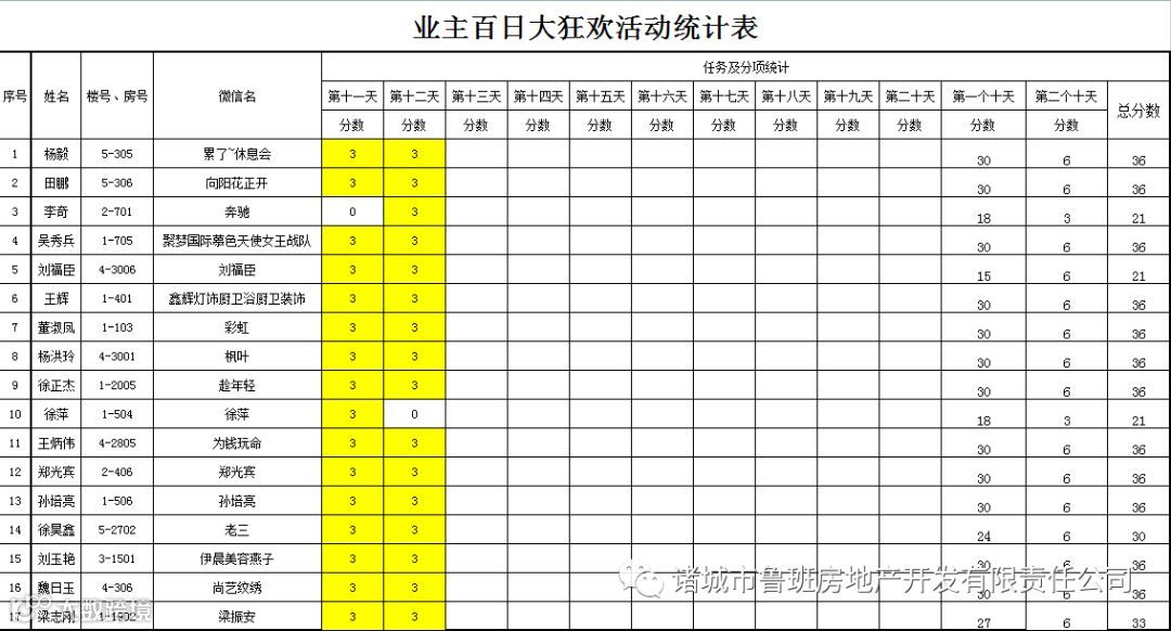 ③.活动结束后,依据业主得分,分高者胜。