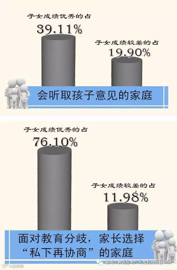 数据显示,“会听取孩子意见”的家庭,子女成绩优秀的占39.11%,而子女成绩较差的比例仅为19.90%。