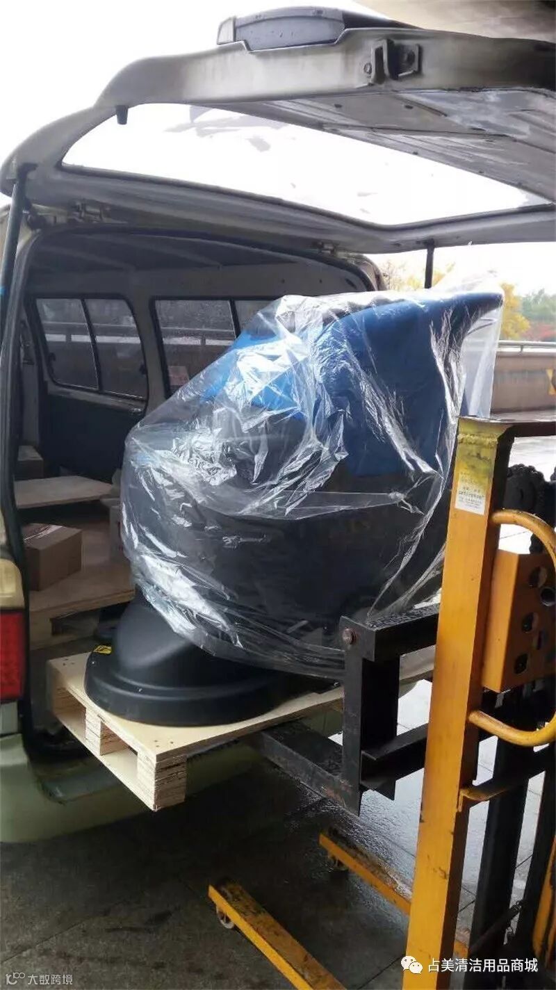 容恩R50B洗地机顺利装上车,准备安全送往东阳某机械厂。