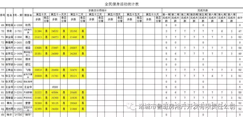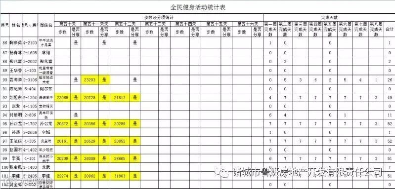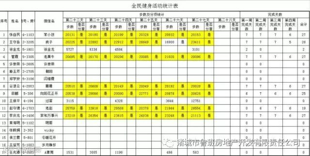 7月1日汇总参赛成绩,按完成天数计算
