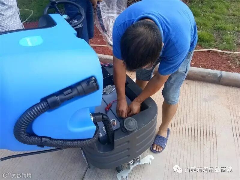 我们占美公司的师傅正在调试容恩R-XBEN小奔洗地机。
