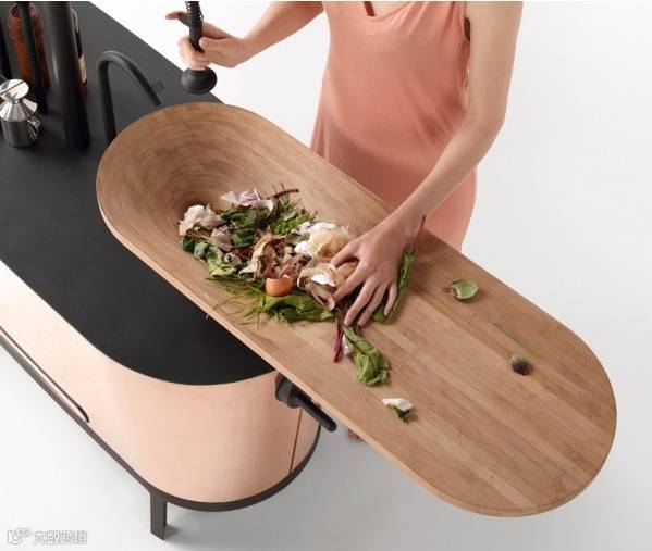3、这款木制洗手盆最适合厨房,自带切菜区。