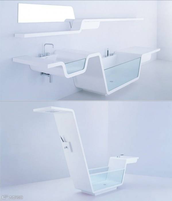 12、洗脸盆浴缸连体,玻璃透明设置有点不怀好意。