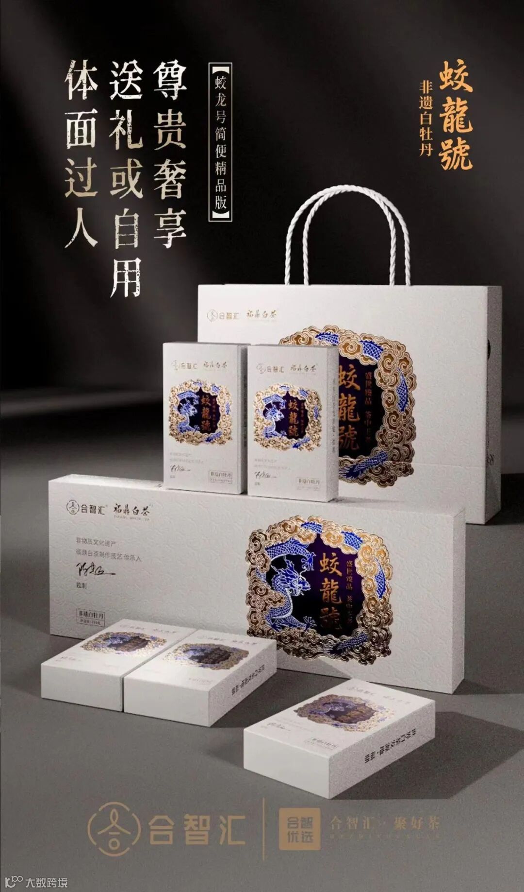 包装延续了蛟龙号的经典风格,此包装融合了古典雅致与现代简洁,彰显茶中王者的尊贵气质。