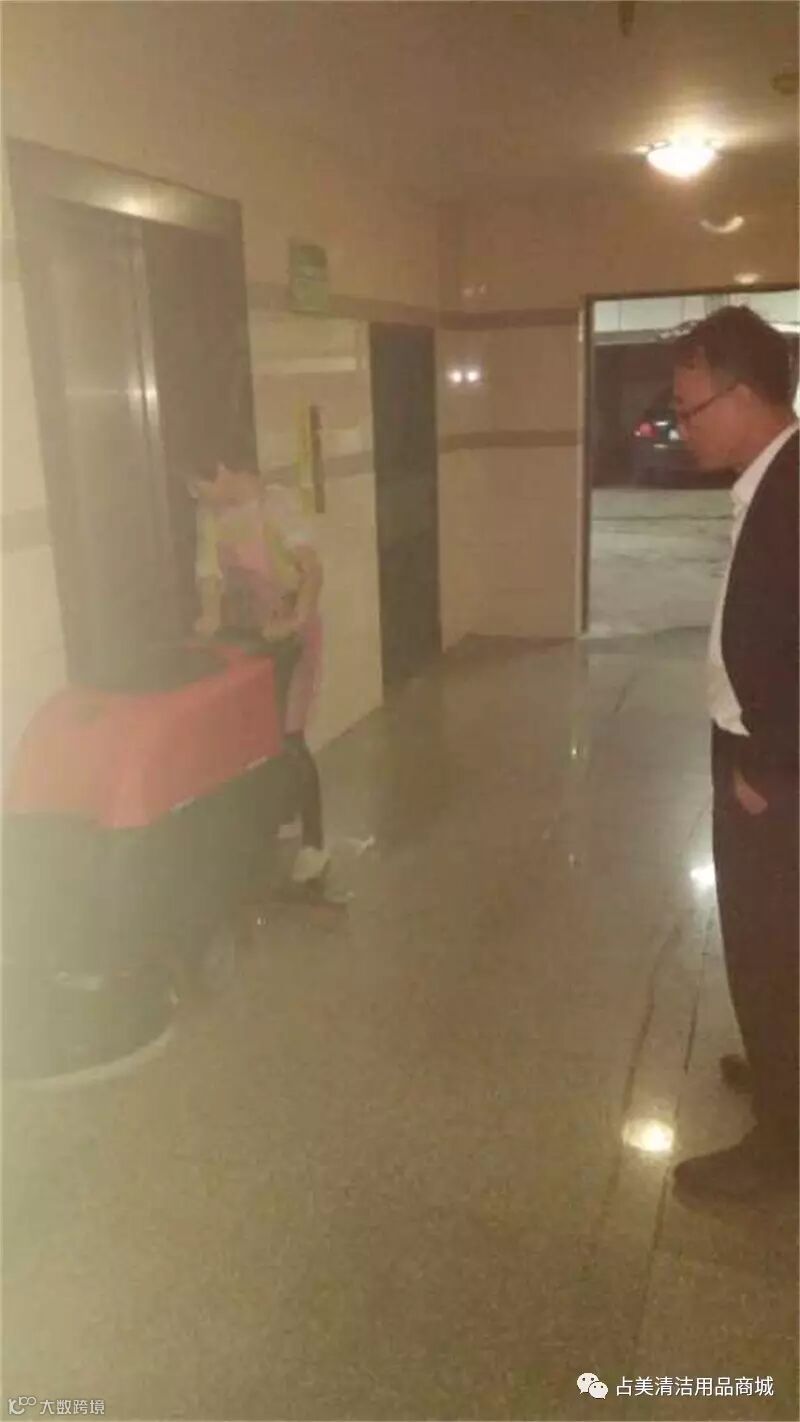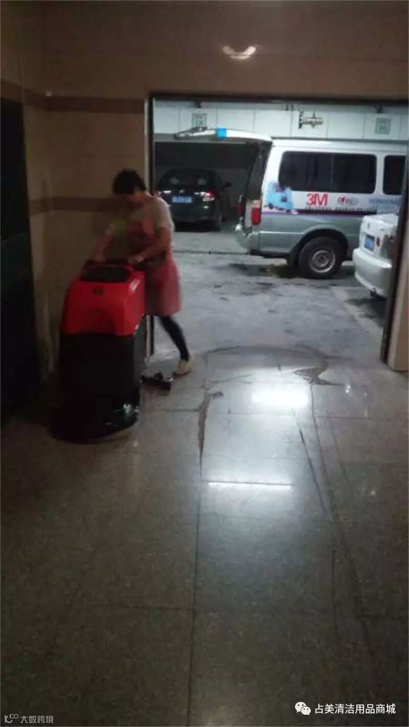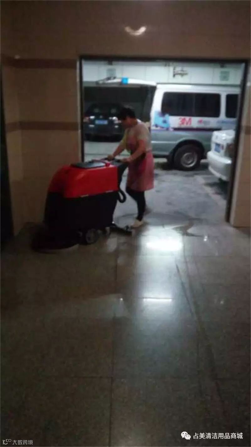 占美定牌洗地机到达目的地之后,对方的员工亲自操作洗地机,效果真是杠杠的!!!