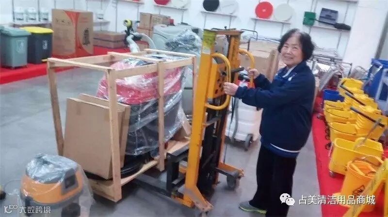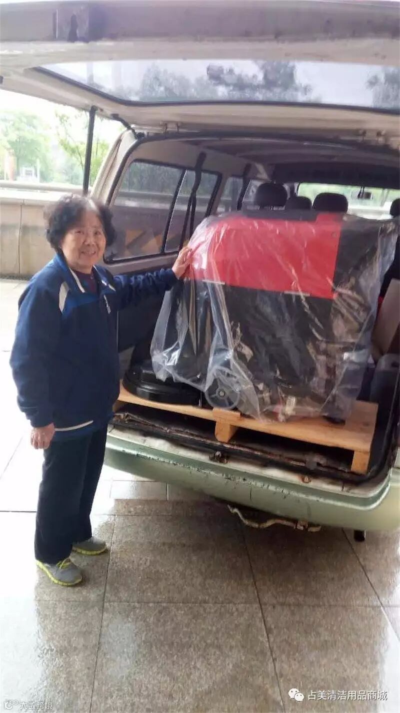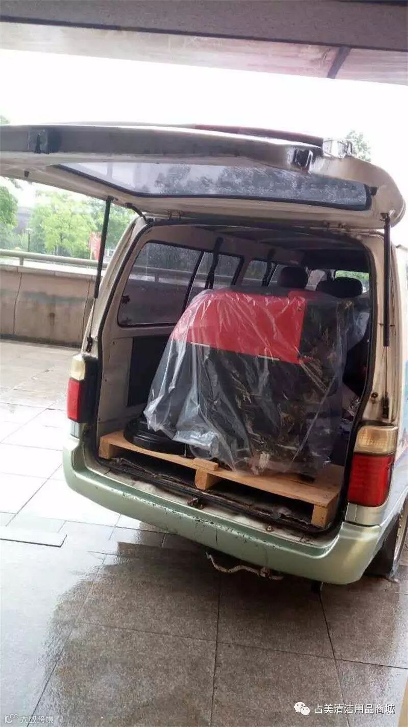 占美定牌洗地机装上车,朝着目的地出发。