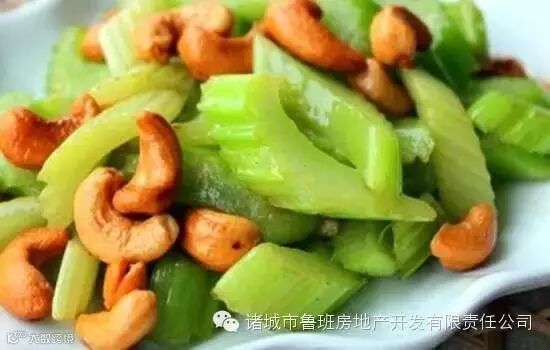腰果可补脑养血,补肾健脾,西芹含多种维生素,促进食欲、降低血压,健脑。