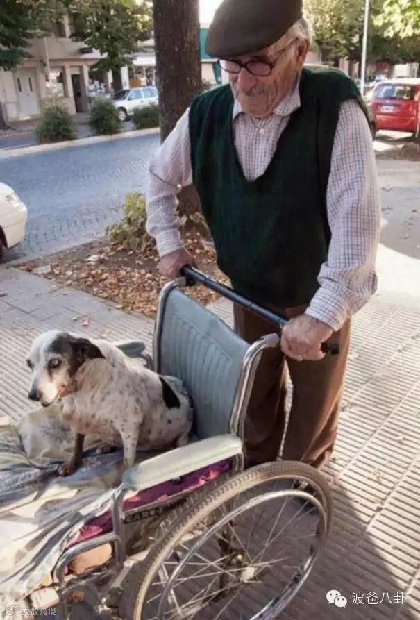 #7 这只狗已经老得走不动了,他的主人每天用轮椅推它出来散步。
