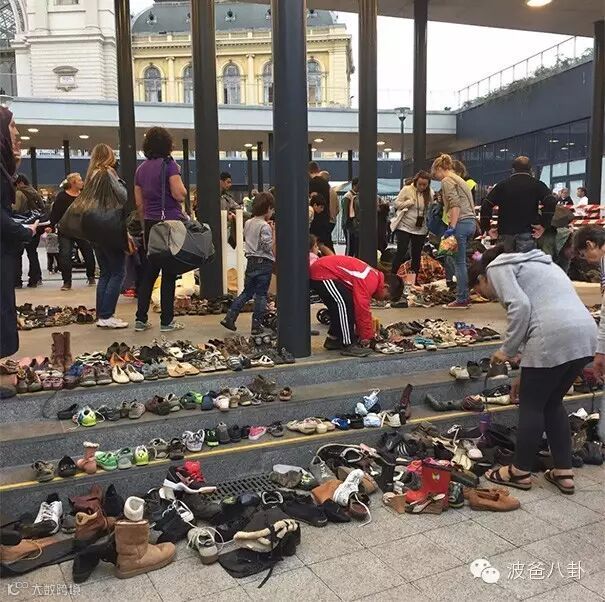 #15 为了帮助刚到达的移民,匈牙利的老百姓把捐出的鞋子送到布达佩斯火车站。