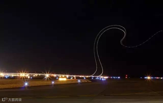 要说到飞行之美,除了驾驶舱的美景外,还有摄影师用长曝光拍摄了一组飞机起降时的延时照片,同同样美得惊心动魄!惊艳得简直就像是通往天空的路。