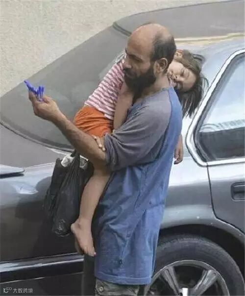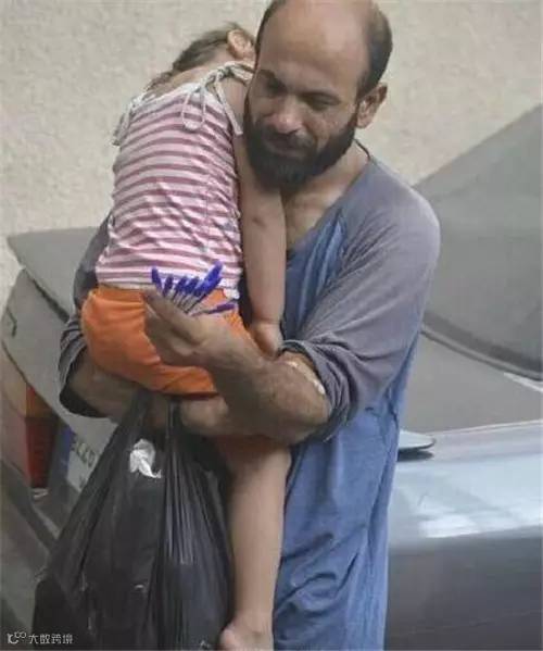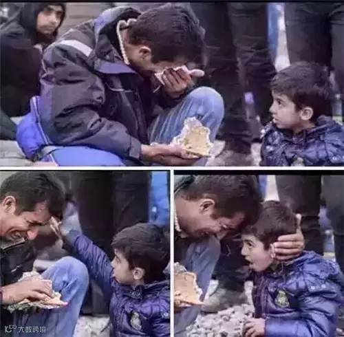 叙利亚的难民爸爸饥饿难耐,找到了一小块馕饼,对孩子说:我閉上眼你再吃。我们没有资格对自己的生活不满意。