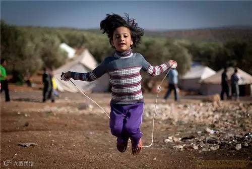 一张图片占据了整个屏幕,一个七、八岁的阿拉伯女孩在跳绳,图片下方有一行字:难民营中的叙利亚女孩。叙利亚战乱有可能成为笫二个索马里。谁之过?执政者?反对派?美国与北约?他们的过错终归是百姓的痛苦。