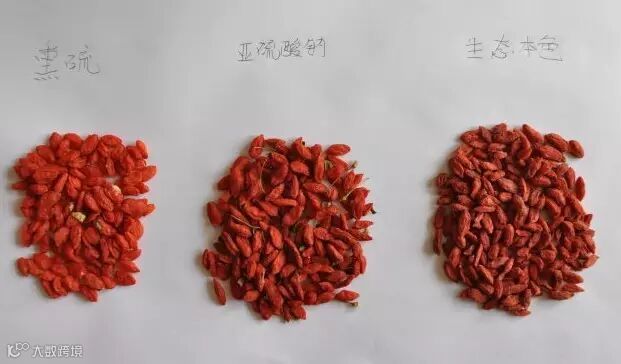 2、鲜红色的枸杞都是硫磺熏过的,自然晒干的枸杞不好看,呈暗红色。