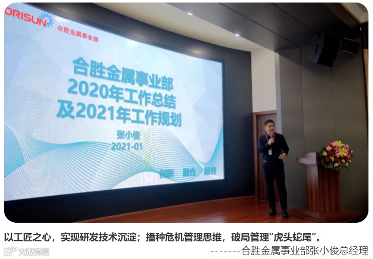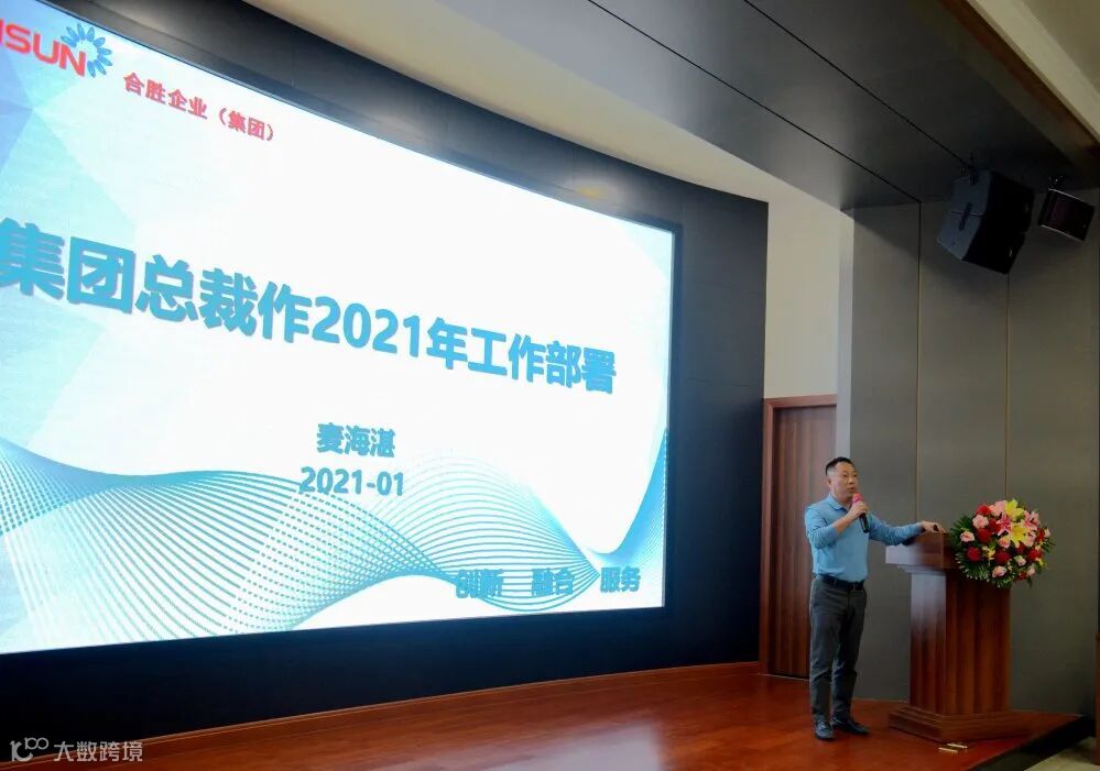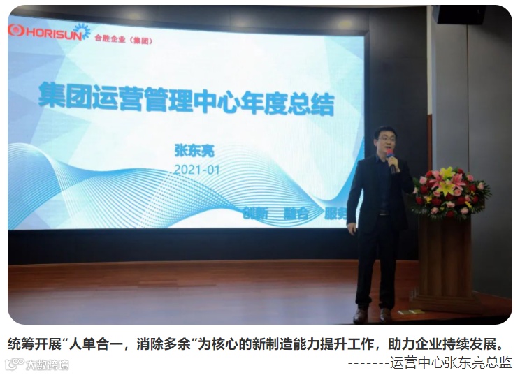 “当下,这场没有硝烟的战斗仍在持续,我们勇往直前、突破自我,不断创造奇迹!今天我们迎来2021合胜企业(集团)年度部署会议召开,势在我行,日变日新,我们将继往开来,进一步深化改革;我们将以新的面貌、新的行动,挑战自我,达成集团年度目标”。