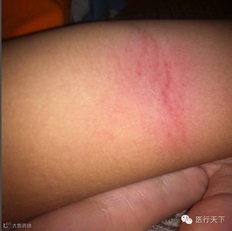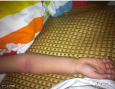 说通之后,我开拍,他就安静了,中间手酸停下来,他还嚷嚷说不要停。我拍的力度大概是哄他小时候睡觉的力度,用手腕的力气。就这样从8点多拍到9点半,他侧躺我拍大椎,他正躺我拍手肘,右手肘在这么轻的力度下竟然都出了痧(见下图)。