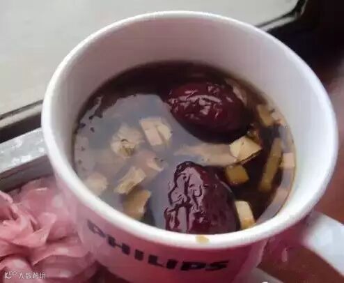 注:常饮姜枣茶,具有温中散寒、止呕、回阳通脉、补血正气、燥湿消炎的功效。饮用后能促使血管扩张,暖身驱寒,全身有温热感。促进消化,增加肠蠕动,保护胃粘膜。姜枣利胆、镇痛、解热、抗炎、抗菌、抗流感及上呼吸道感染。此方可长期饮用,美容养生。