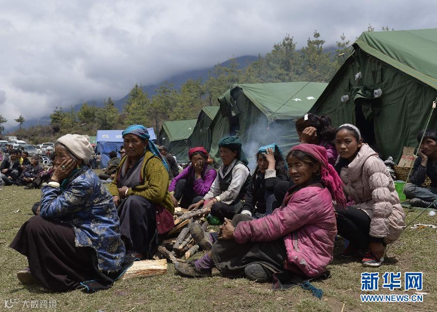 △ 4月26日,西藏吉隆县萨勒乡萨勒村村民在救灾帐篷外休息。
