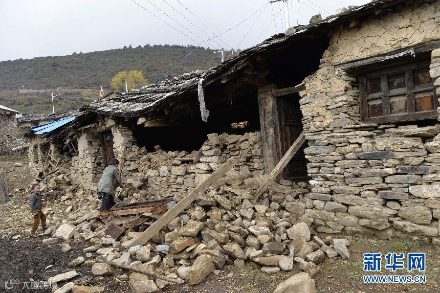 △4月26日拍摄的西藏吉隆县萨勒乡卡帮村被震毁的民房。
