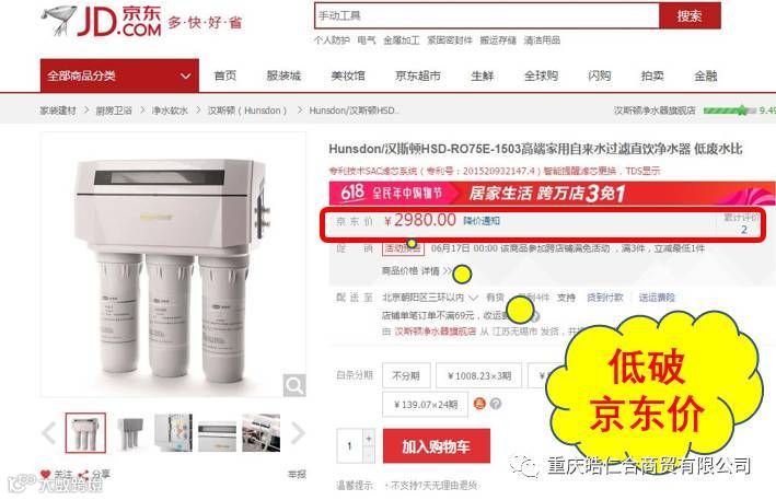 低破京东价,汉斯顿净水器6折抢购