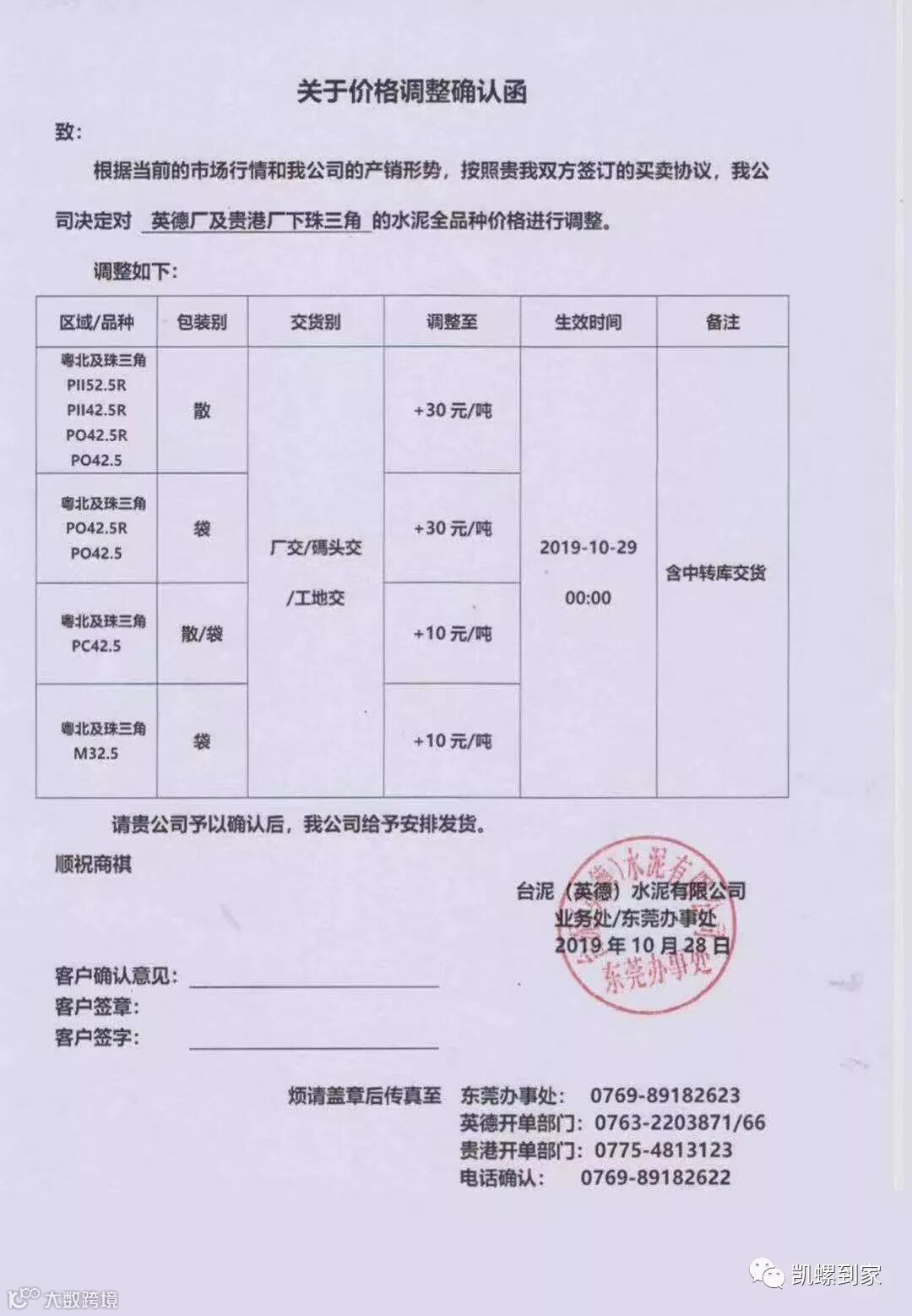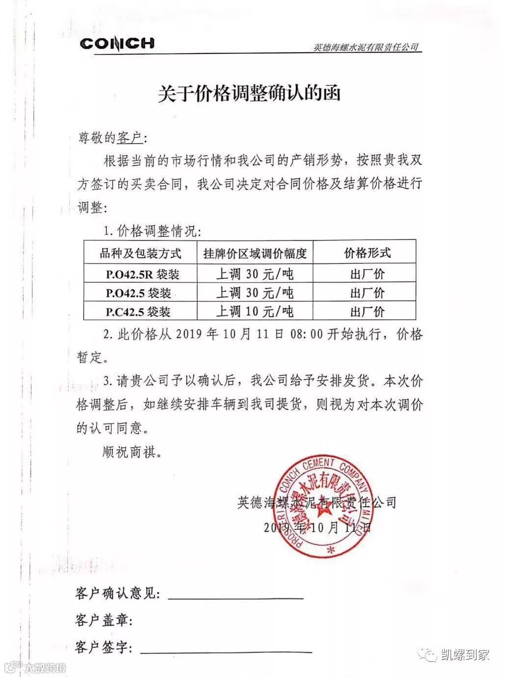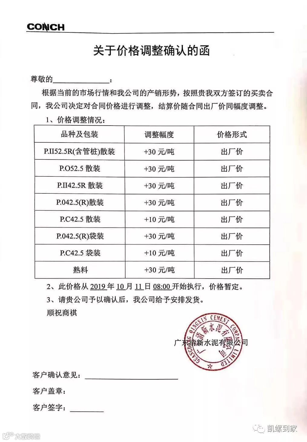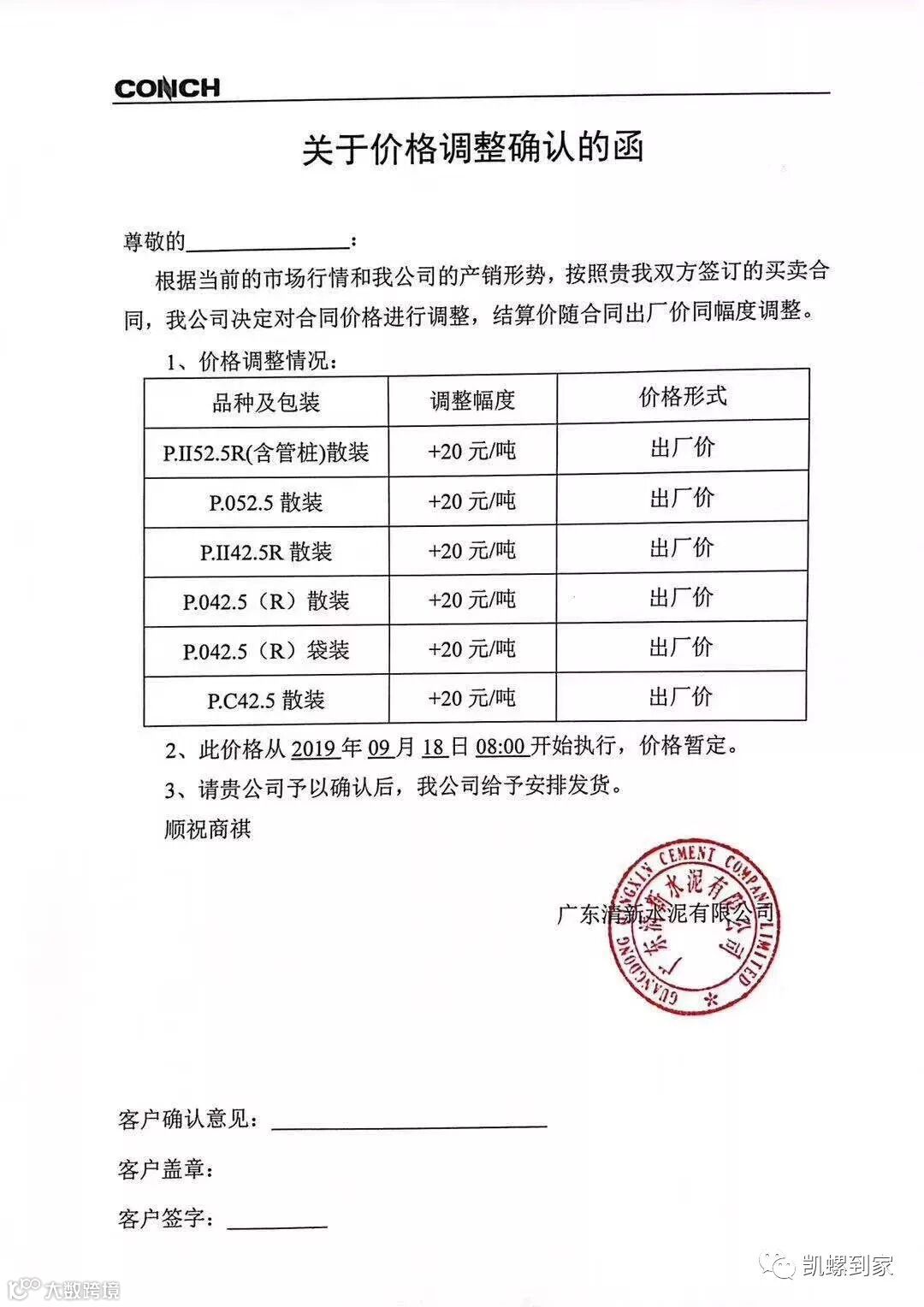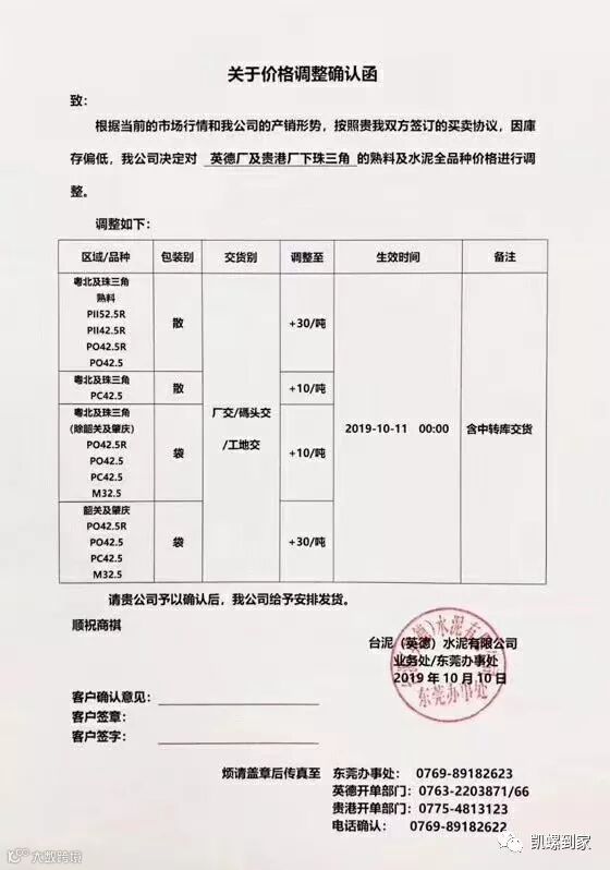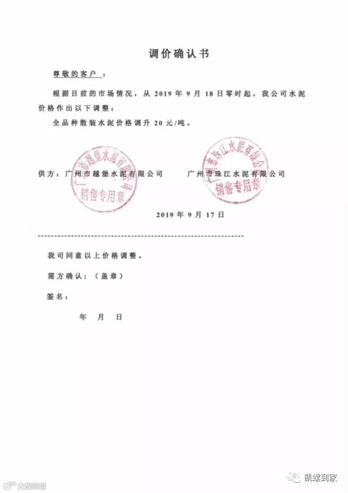 “凯螺到家”作为珠三角地区各大品牌水泥一级代理商,从9月份起就陆续收到各大合作厂家的水泥价格上涨的调价函