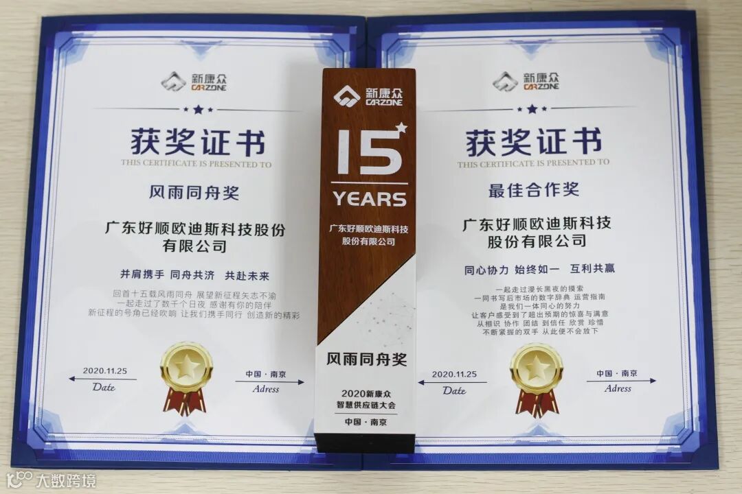 大会上,好顺科技荣获新康众集团颁发的“最佳合作奖”及“风雨同舟奖”在此感谢新康众集团对彼此合作的认可。