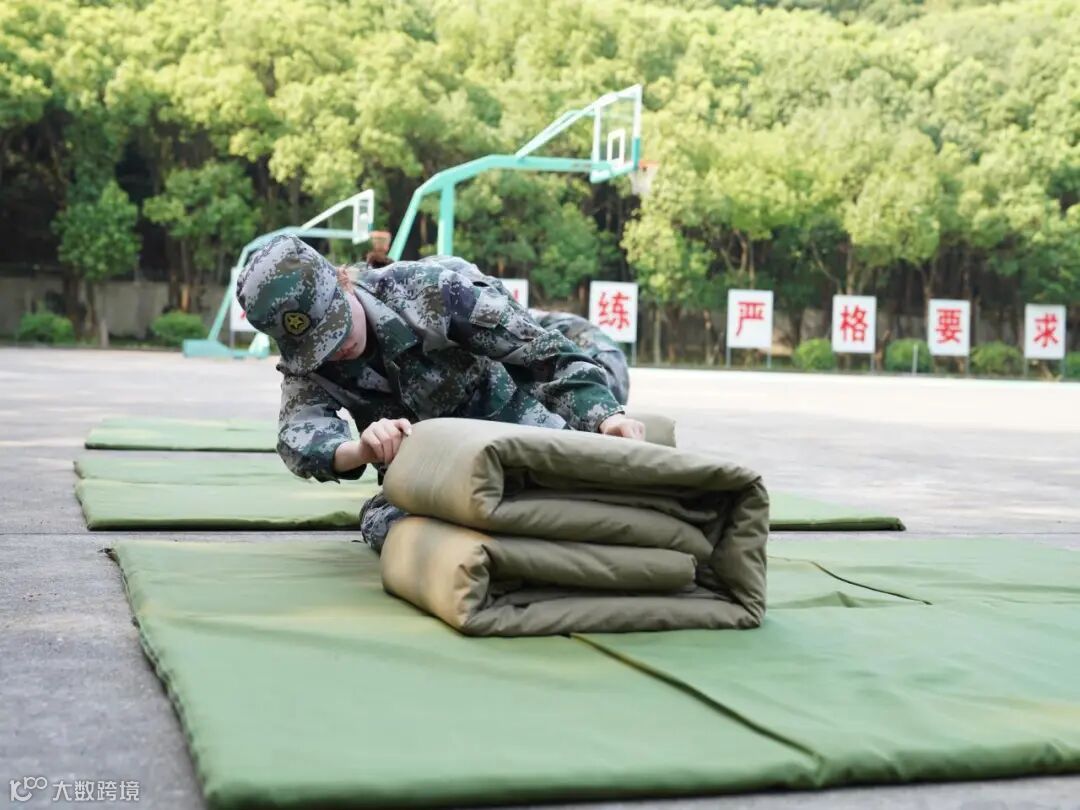 内务比武由两名女生和四名男生进行叠“豆腐块”比拼。这次集训,女生的表现尤为亮眼,铿锵玫瑰绽放出了坚韧之花。