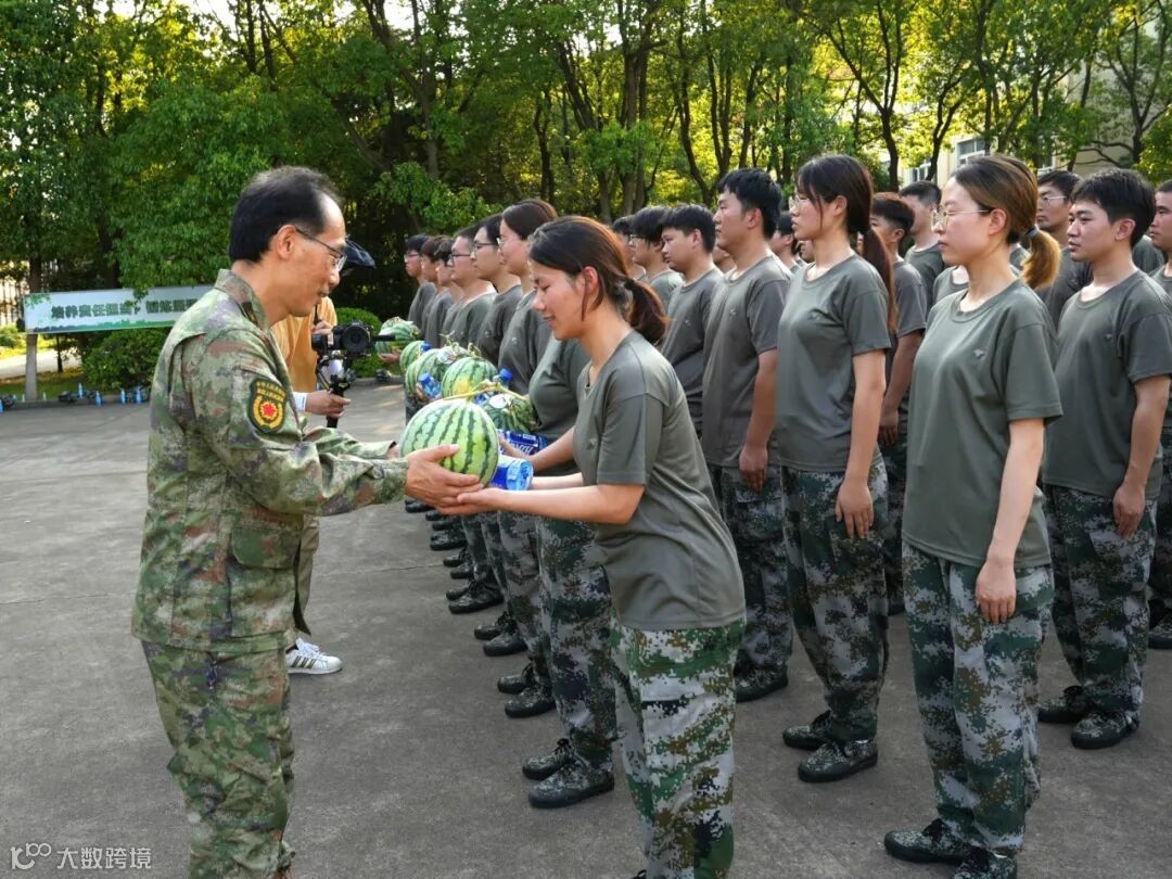 军训期间,华昌集团党委委员、纪委书记、人武部部长陈饶忠,华昌化工总经理助理、供销公司经理周辉等带着解暑饮料和水果等慰问物资到凤凰基地亲切慰问新员工们。