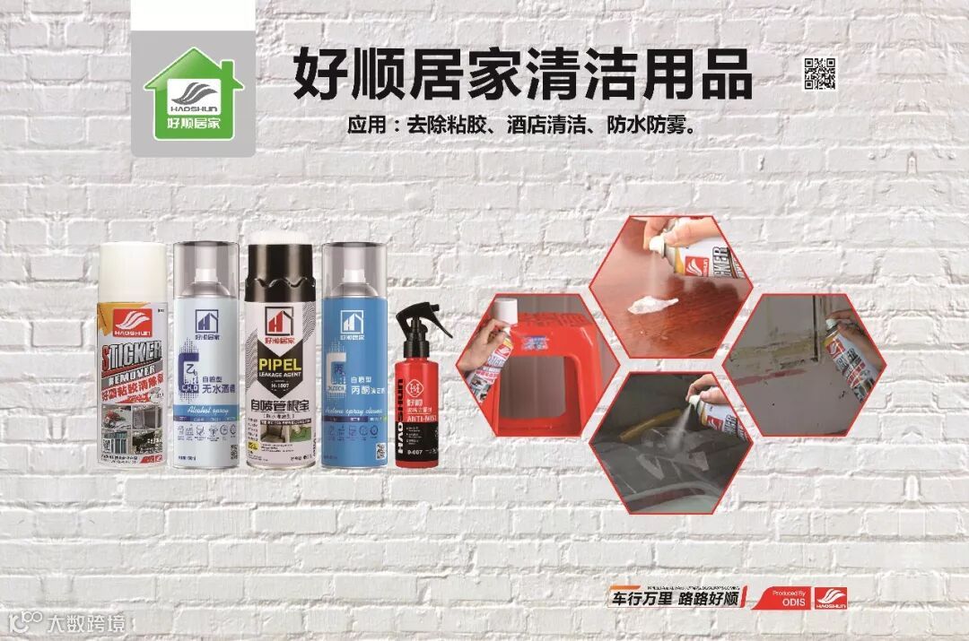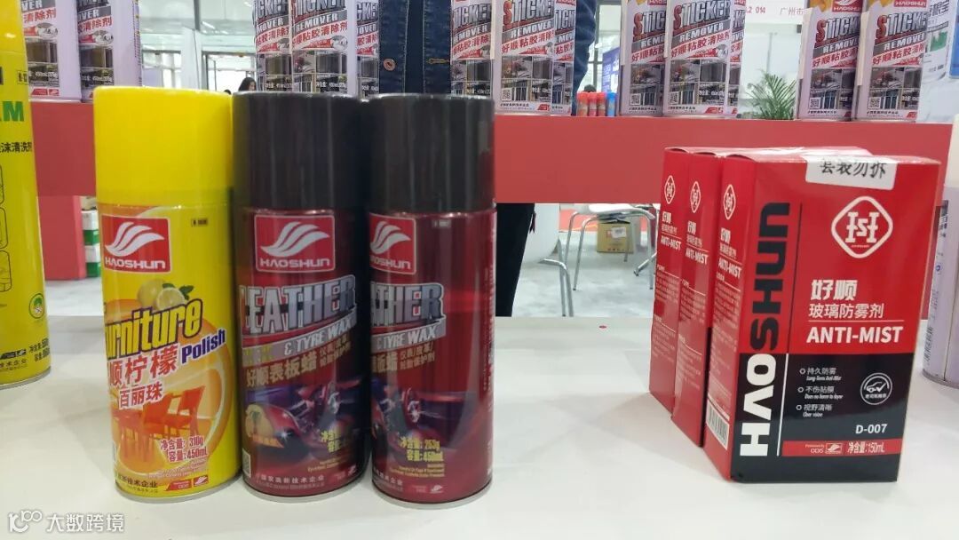 本次展会,好顺主要以居家清洁类产品为主,拥有好顺粘胶去除剂、多功能泡沫清洗剂、自喷酒精、厨房油污去除剂、玻璃防雾剂、真皮去污膏、皮革上光剂等全系列产品。