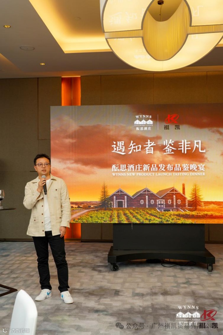 2024年8月26日,富邑葡萄酒集团(TWE)旗下高端品牌Wynns酝思酒庄携手其在中国市场的重要合作伙伴祺凯酒业,于广州保利洲际酒店隆重举办了一场别具一格的核心产品发布品鉴晚宴。此次盛会不仅是Wynns酝思酒庄正式进军中国市场的重要时刻,也象征着祺凯酒业在高端葡萄酒进口与推广领域的持续拓展。