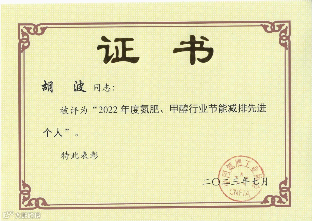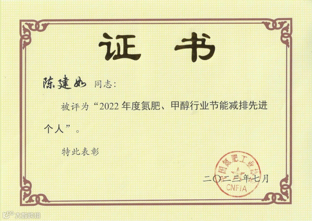 华昌化工董事长胡波,华昌化工工艺总工程师、技术中心常务副主任、项目办主任陈建如获“2022年度氮肥、甲醇行业节能减排先进个人”荣誉称号。