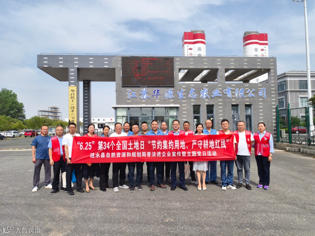 今年6月25日是第34个全国土地日,围绕“节约集约用地,严守耕地红线”主题,华昌化工(涟水)实业发展有限公司特邀涟水县自然资源和规划局副局长邱建权一行,开展普法进企业与主题党日宣传活动,涟水实业办公室主任尹军,华源生态农业有限公司总经理钱雄参加活动。