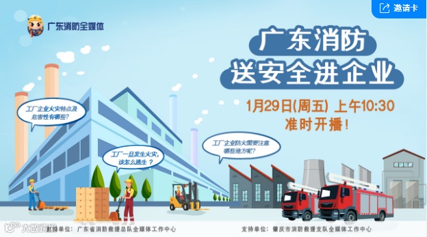 北京时间1月29日,由肇庆市消防救援支队全媒体工作中心主办,省消防救援总队全媒体工作中心直播,“广东消防送安全进企业”活动来到我们广东好顺欧迪斯科技股份有限公司。作为市级一线三排安全示范单位,好顺科技协助省消防救援进行本次工厂企业防火示范活动。微信、抖音、快手、微博四大平台现场直播。