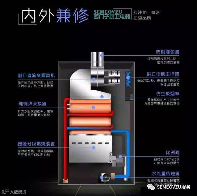 封闭式强化燃烧的设计可以最大程度的利用燃气燃烧后产生的热能,做到更加节能环保。