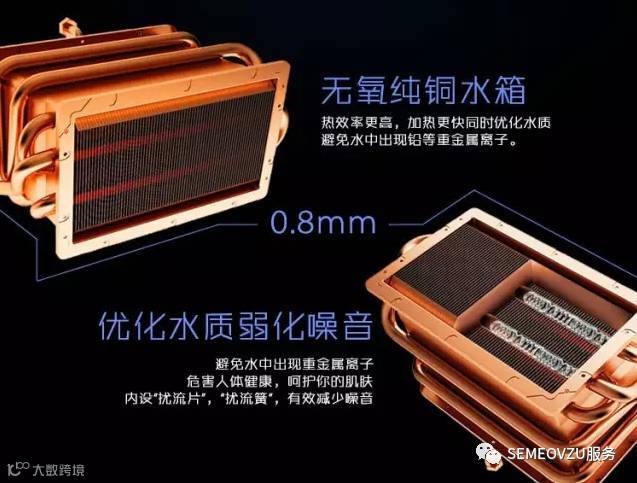 目前燃气热水器的水箱制作材料中,最好就是无氧铜的了。首先,铜的导热效率高,水热得快也更加节能。其次,在各种比较适合做水箱的金属材料中铜 的熔点最高(铜:1083、金:1064、银:962、铝:660、铅:327、锡:232),因此用铜作为热交换的材料是最合适的。不过与铝、铁比起 来,铜还是贵的,因此只有负责任的厂商才会大面积使用铜作为水箱的主要材料。当然,无氧铜不同于我们常说的铜,它是不含氧也不含任何脱氧剂残留物的纯 铜。但实际上还是含有非常微量氧和一些杂质。按标准规定,氧的含量不大于0.03%,杂质总含量不大于0.05%,铜的纯度大于99.95%。这种铜的价格比一般的紫铜要高很多,但是防腐蚀效果非常好,安全耐用。因此只有在高端机上才会使用无氧铜材料做水箱。
